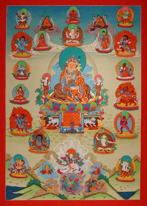 Sự xuất hiện của Kim cương Thượng sư Liên Hoa Sinh trong cõi Sa bà đã được Đức Phật Thích Ca huyền ký trong nhiều kinh điển. Đức Phật cũng đã dạy rằng Đức Liên Hoa Sinh chính là Đức Phật A Di Đà trong hình tướng loài người. Từ Pháp thân, Đức Phật A Di Đà hóa hiện Báo thân là Đức Phật Quan Âm, và Hóa thân là Đức Liên Hoa Sinh. Cũng như vậy, tuy an trụ trong tự tính tâm bất khả tư nghì, Đức Liên Hoa Sinh cùng lúc thị hiện vô số hóa thân với các công hạnh khác nhau để mang sự giải thoát cho chúng sinh.