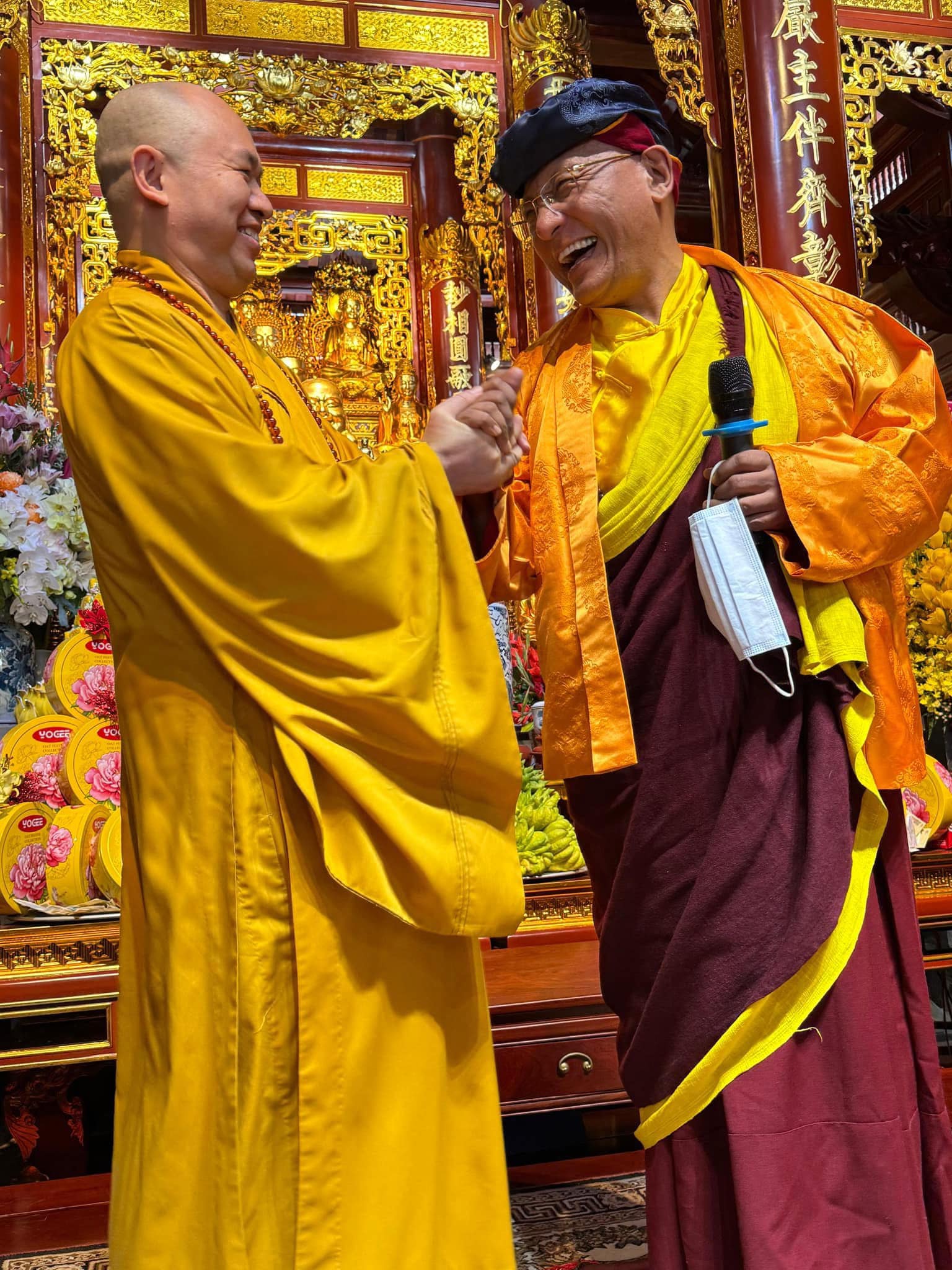 Chiều 2/2 (mùng 5 Tết Ất Tỵ), Đức Gyalwang Drukpa cùng thượng tọa Thích Đức Thiện trao đổi về ứng dụng khoa học, chuyển đổi số trong các hoạt động phật sự.