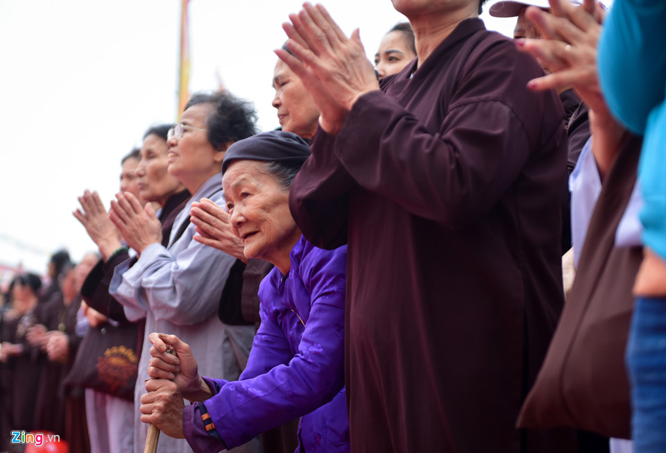 Cụ Lê Sinh (81 tuổi) đã đi bộ 3 km từ 4h sáng để được chứng kiến bức tranh Mandala Phật Quan Âm. Mỗi khi Đức Pháp Vương sang Việt Nam, cụ đều chống gậy đi và ở lại tu tập.