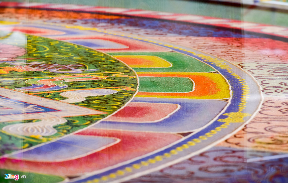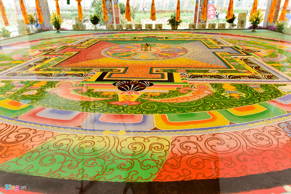 Bức tranh Mandala có đường kính tới 9 m được 20 cao tăng đến từ vùng Himalaya tạo tác trong 9 ngày đêm liên tục với 35 loại đá quý khác nhau.