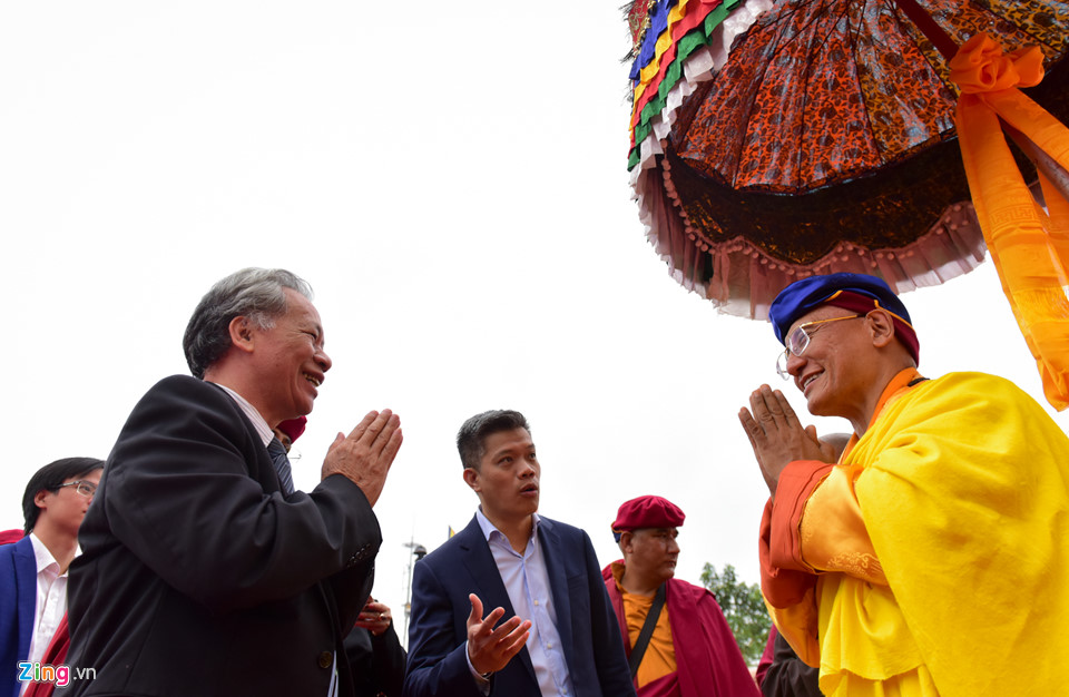 Sáng 16/3, Đức Pháp vương Gyalwang Drukpa cùng Tăng đoàn khai mở Đại Mandala Phật Quan Âm và bức Thongdrol (Tranh cuộn) Phật Quan Âm thiên thủ thiên nhãn trước sự tham dự của hàng nghìn phật tử tại xã Đại Đình, huyện Tam Đảo, Vĩnh Phúc.