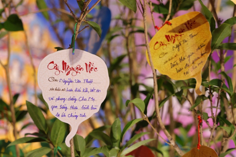 Ngay tại cửa đông trong lòng Bảo tháp, một cây mộc xanh tươi được trang trọng đặt làm "Cây Hứa nguyện hiếu thuận". Mỗi phật tử, mỗi người dự lễ đều tự tay viết lên những tấm thiệp, những lời hứa, những điều muốn nói từ sâu thẳm trái tim rồi treo lên cây.