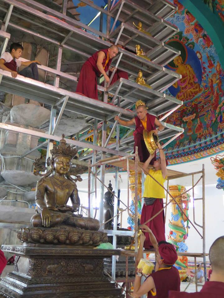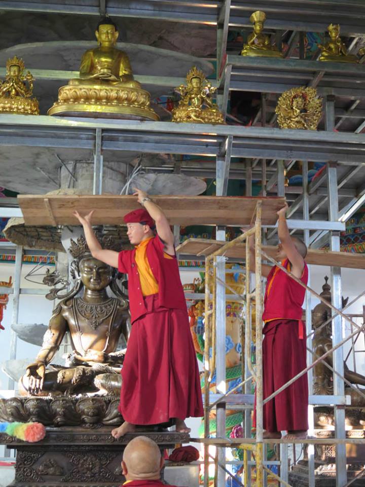 Trong những ngày qua, chư Tăng Ni đã thực hiện yểm 108 tôn tượng chư Phật, chư Thượng sư trên Cây Phúc Điền Quy Y Truyền thừa Drukpa. Sau đó, các tôn tượng này được đặt trên cấu trúc thô của Cây Quy Y để chuẩn bị cho buổi lễ Khai quang điểm nhãn, cung thỉnh Phật an trụ chư tôn tượng trong lòng Đại Bảo Tháp do Đức Pháp Vương Gyalwang Drukpa chủ trì sẽ diễn ra ngày Chủ nhật (27/09).