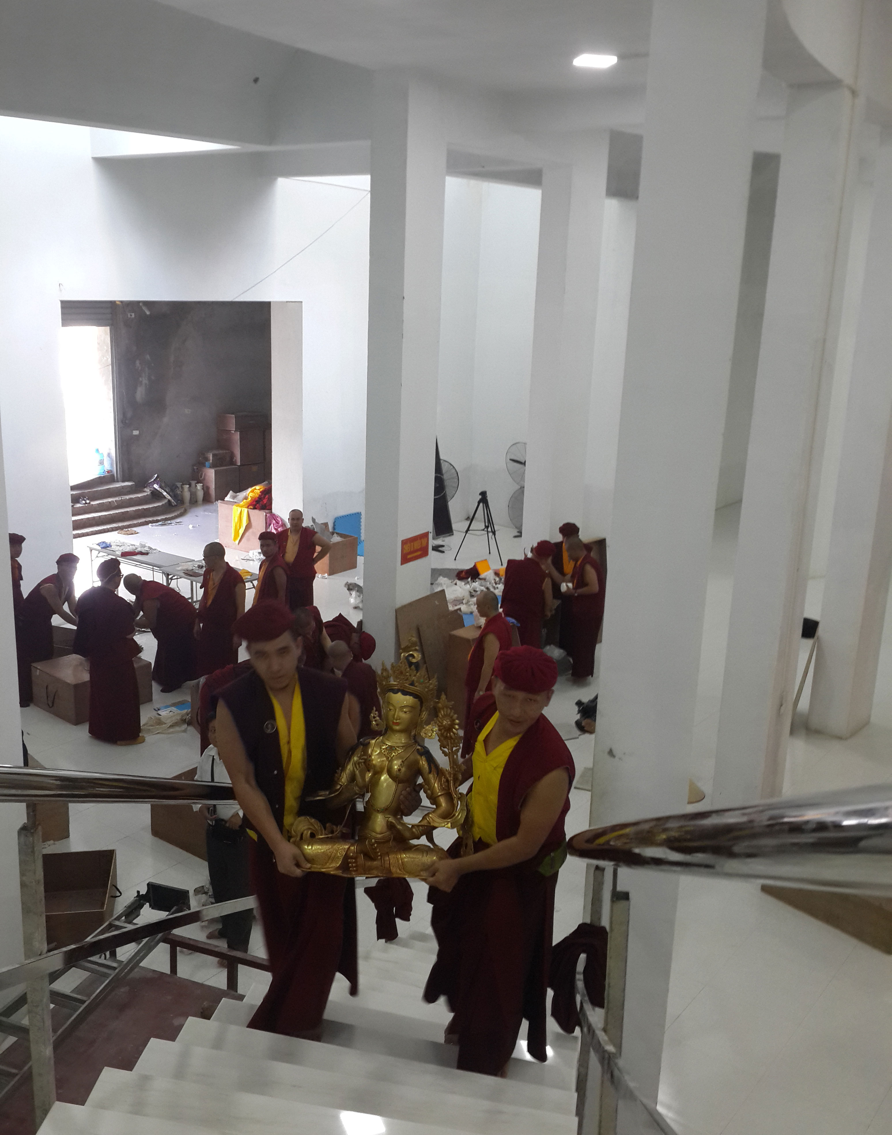 Công tác chuẩn bị trong lòng Đại Bảo Tháp Mandala Tây Thiên