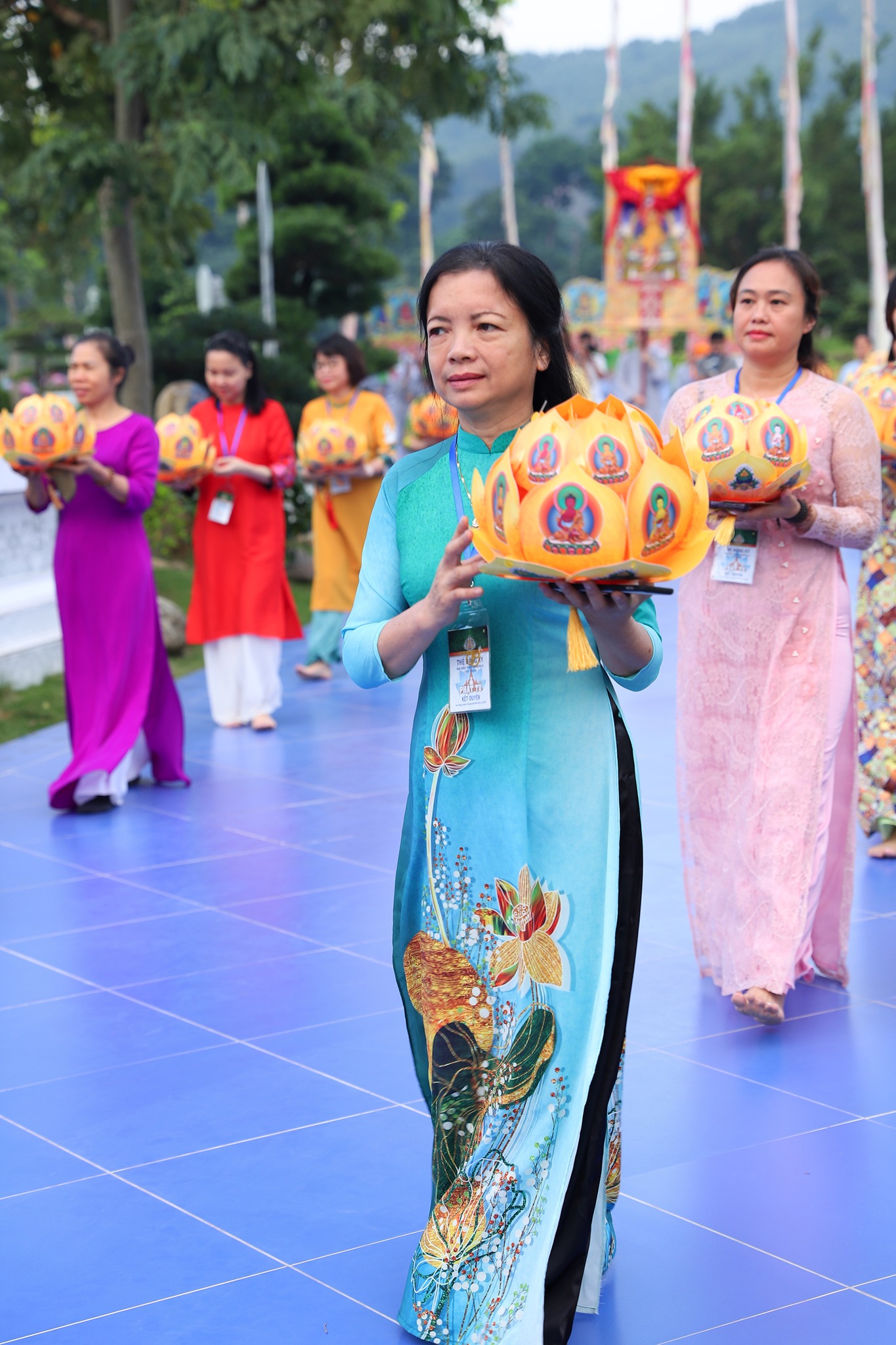 Ngay từ sáng sớm, hơn 400 Phật tử đã vân tập về Đại Bảo Tháp Mandala Tây Thiên trong những trang phục rực rỡ. Phật tử nữ diện những bộ áo dài truyền thống Việt Nam, Phật tử nam mặc áo tràng lam trang nghiêm với khăn Khata. Khóa lễ lần này, hưởng ứng lời thỉnh cầu của Ban tổ chức, các Phật tử cùng phát nguyện vận trang phục thật đẹp, tham gia cung rước Hải hội Phật Dược Sư, cầu nguyện cho quốc thái, dân an, mọi chúng sinh thân tâm an lạc, mạnh khỏe, đặc biệt là tri ân tới Phật tử nữ nhân ngày Phụ nữ Việt Nam 20/10.