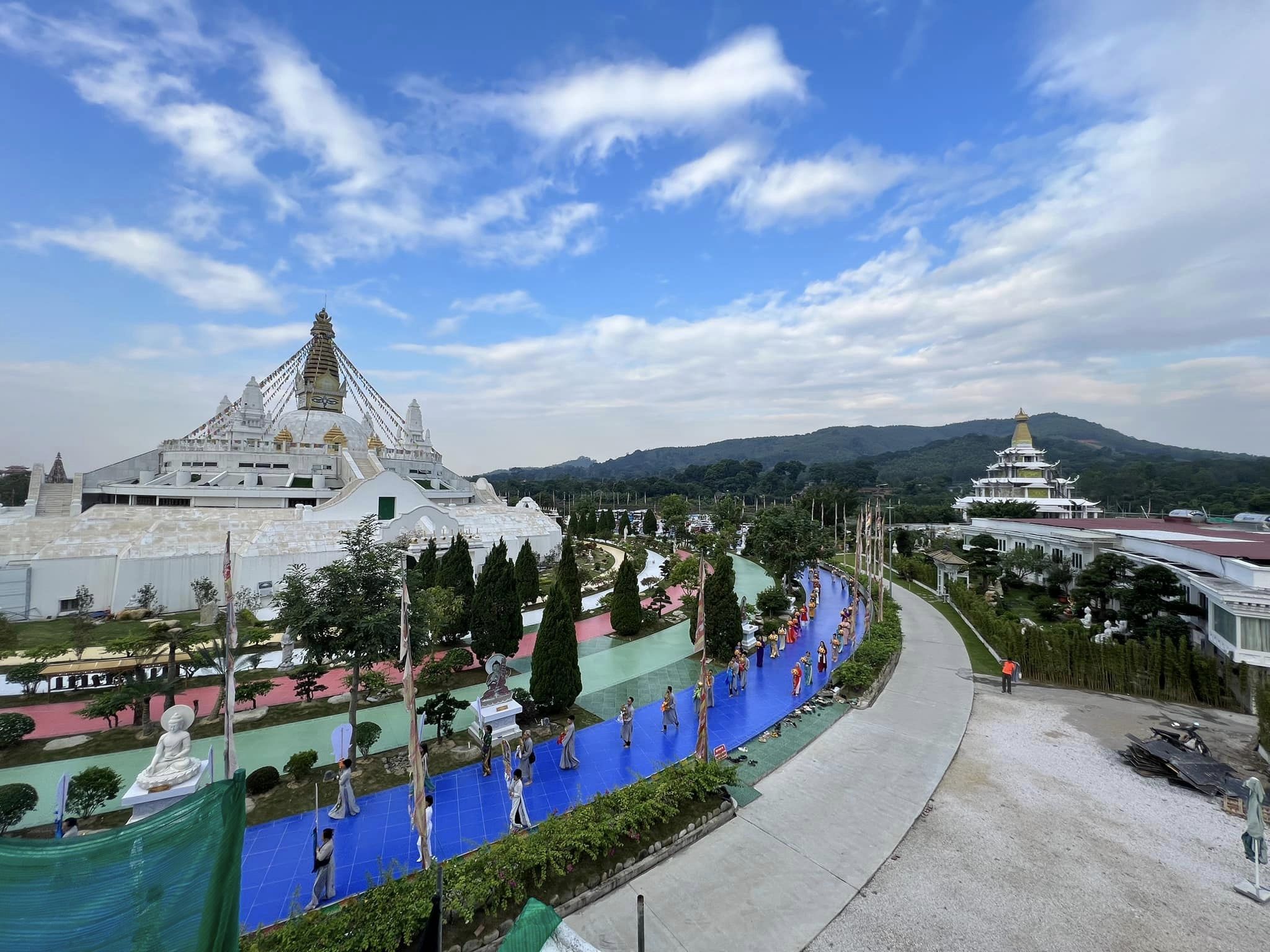 Trời Tây Thiên ngọt nắng trong những ngày thu, đẹp nao lòng du khách hành hương. Trong không gian tâm linh nơi thánh địa Đại Bảo Tháp Mandala Tây Thiên linh thiêng tràn đầy ân phúc gia trì, tình yêu thương và trí tuệ của Đức Phật Dược Sư, đoàn cung rước đã vi nhiễu 5 vòng xung quanh ngôi Bảo Tháp giác ngộ trước khi cùng vân tập trong chính điện cử hành khóa chuyên tu diễn ra trọn vẹn một ngày.