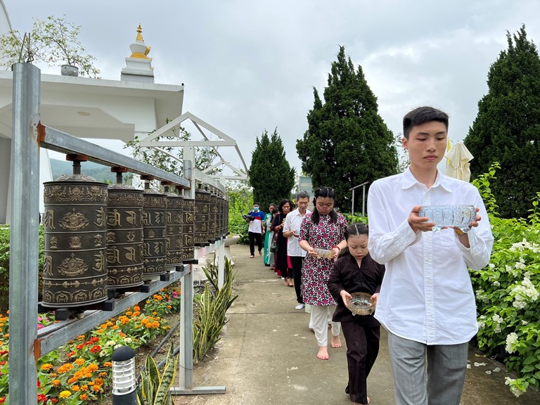 Một bạn nữ đến từ Hà Nội cảm xúc nói: “Tôi lần đầu đến tham dự lễ tại Bảo tháp Mandala Tây Thiên lại được thực hành ngay nghi thức dâng nước tịnh thủy cúng Phật rất mới lạ, tâm hoan hỉ vô cùng…