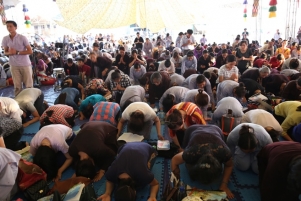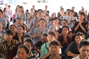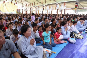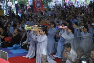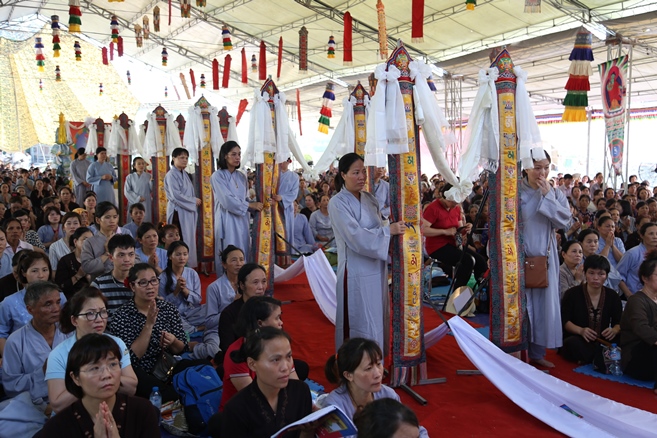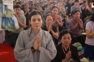 Mặc dù trời oi bức từ sáng sớm, nhưng tất cả mọi người đều nhất tâm cầu nguyện, ăn năn sám hối, một lòng cầu xin năng lực gia trì của mười phương chư Phật tiếp độ những hương linh bé bỏng về cảnh giới Tây phương của Đức Phật A Di Đà.