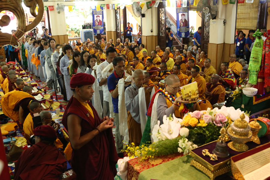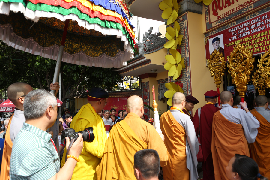 Ngày 31/03 - Hôm nay là ngày cuối cùng của Pháp hội “Pháp Vũ Rồng Thiêng”, Đức Pháp Vương Gyalwang Drukpa đã từ bi trao truyền và giảng giải Pháp thực hành mở đầu Ngondro cho chư Tăng Ni và Phật tử có thắng duyên tham dự Pháp hội tại Quan Âm Tu Viện. Chúng tôi xin gửi tới Quý vị những hình ảnh trực tiếp về Khóa lễ hôm nay.