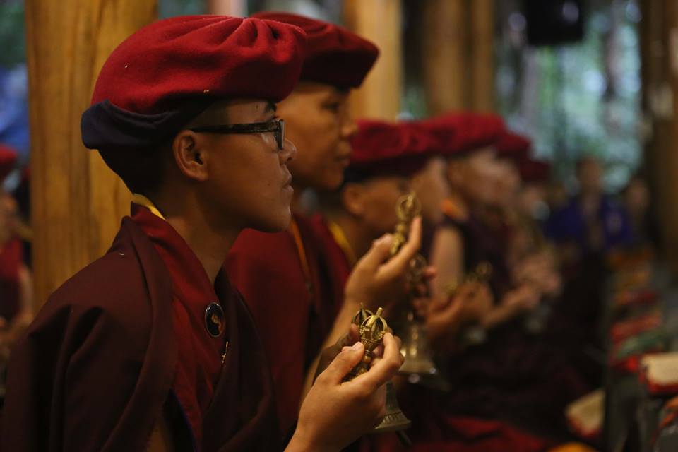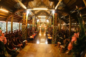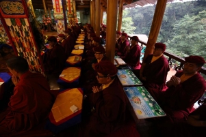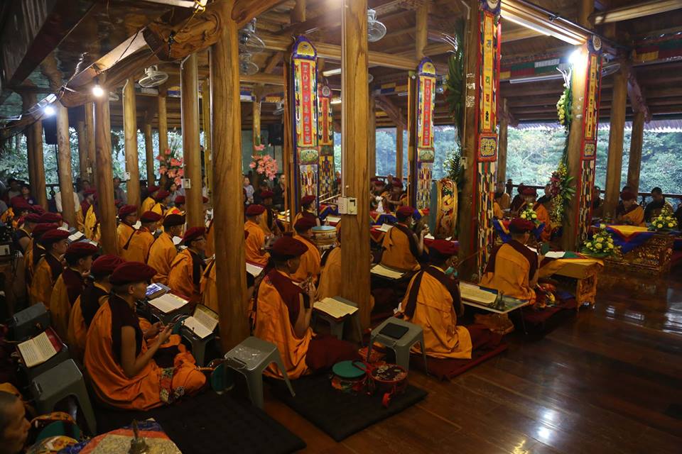 Sáng ngày 24/3 - Đức Pháp Vương Gyalwang Drukpa truyền giảng Pháp tu Ngondro cho Chư Tăng Ni tại Tịnh Thất Tây Thiên. Pháp tu này bao gồm cả Tam thừa Phật giáo. Nguyên thủy Phật giáo trong Ngondro là nghiêm trì giới luật, Đại Thừa Phật giáo chính là tu tập về Bồ Đề Tâm, Kim Cương Thừa là phương tiện thiện xảo, nhanh chóng giúp tịnh hóa tâm thoát khỏi các xúc tình tiêu cực. Chúng ta bắt đầu tịnh hóa từ Thân Khẩu và cuối cùng là tịnh hóa tâm. Chúng ta cần phải hiểu rõ cả Tam Thừa Phật Giáo vì đây là những nấc thang tu tập không tách rời nhau. Tam thừa là một con đường có thứ lớp, Pháp tu mở đầu gồm 2 phần đầu là Quy Y, cúng dàng Mandala, đây chính là giáo lý Tiểu thừa và Đại thừa. 2 phần sau là Kim Cương Tát Đỏa và Guru Yoga, đây chính là phần phương tiện thiện xảo của Kim Cương Thừa. Vì vậy Pháp tu mở đầu vô cùng quan trọng, rất cần được hoàn thiện đối với mỗi hành giả.