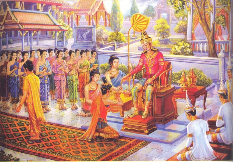 Sau khi thái tử Tất Đạt Đa giành chiến thắng vang dội cả về võ thuật lẫn thể thao trong tất cả các cuộc thi tài kén chọn phò mã của nàng công chúa vô cùng kiều diễm, thanh cao và hiền thục Da Du Đà La, Quốc vương Tịnh Phạn vô cùng vui mừng và tổ chức một lễ thành hôn long trọng, xa hoa theo đúng nghi thức hoàng gia cho Thái tử. Lúc đó, Đức Phật mới mười sáu tuổi với dung mạo tuấn tú phi phàm và phong thái thanh lịch, hòa nhã.