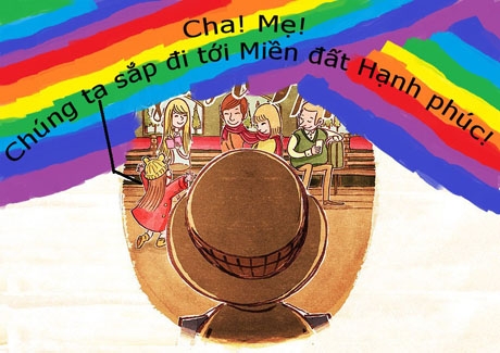 Cô bé ngây thơ tưởng rằng chuyến tàu này sẽ dừng lại ở Miền đất Hạnh phúc. Chưa kịp nghe ông cụ trả lời, cô bé đã chạy lại khoe với cha mẹ: “Cha! Mẹ! Chúng ta sắp đi tới Miền đất Hạnh phúc đấy!”.