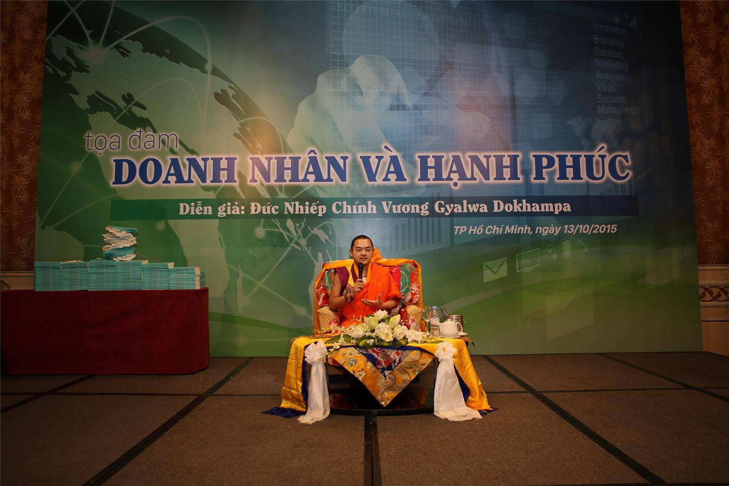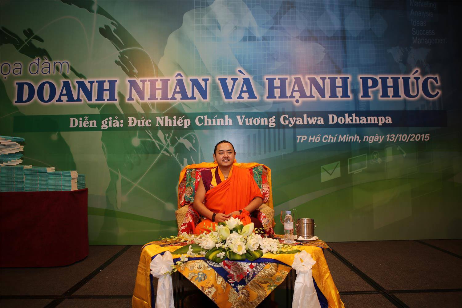 Chào mừng ngày Doanh nhân Việt Nam 13/10, Báo Vietnam Potentials - Tiềm năng Việt (thuộc Phòng Thương mại và Công nghiệp Việt Nam - VCCI) phối hợp với CLB Tuổi trẻ Thăng Long - YDA Việt Nam tổ chức buổi tọa đàm với chủ đề "Doanh nhân và Hạnh phúc". Với sự hiện diện của Đức Nhiếp Chính Vương Gyalwa Dokhampa, Ngài đã có buổi trò chuyện với Doanh nhân TP HCM về hạnh phúc trong kinh doanh tại khách sạn Sheraton Saigon.