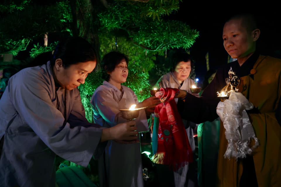 Tại sự kiện trang nghiêm và đặc biệt này, đích thân Ni sư Trụ trì Đại Bảo Tháp đã trao truyền ngọn lửa ánh sáng trí tuệ Phật đến chư Ni và lần lượt đến từng Phật tử. Ngọn lửa thắp sáng ngọn đèn bơ nêu biểu trí tuệ Phật, được trao truyền qua bao thế hệ, soi sáng con đường tu học.