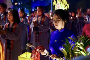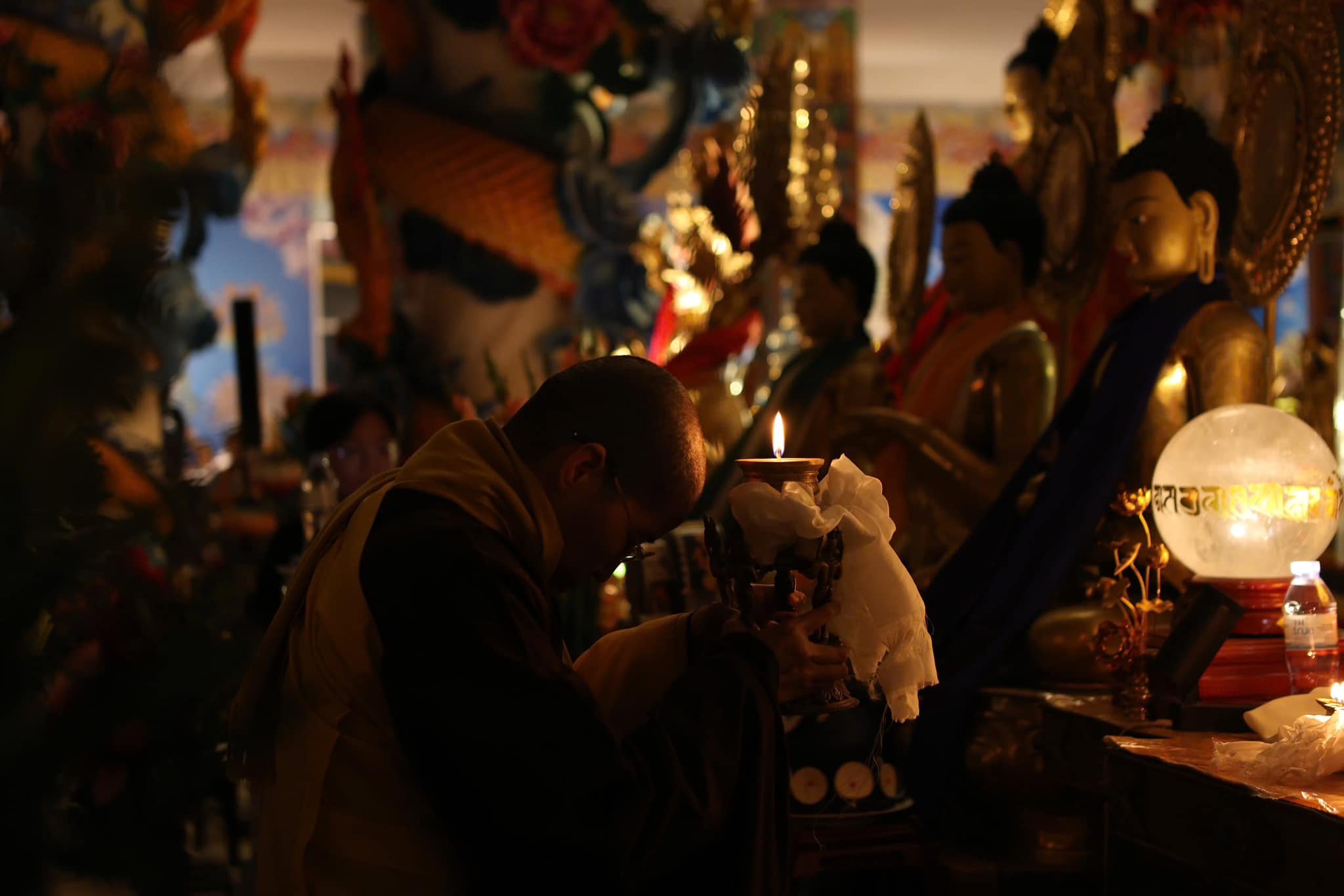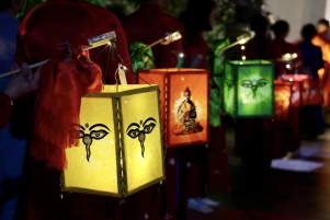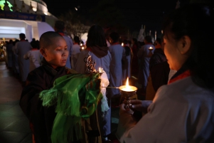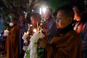 Toàn thể đại chúng Phật tử xúc động và hoan hỉ nâng niu ngọn đèn bơ, thực hành vi nhiễu Đại Bảo Tháp và đặt vào nhà cúng dường đèn, cầu nguyện cho trí tuệ và lòng từ bi luôn tỏa sáng muôn nơi và trường tồn mãi mãi.