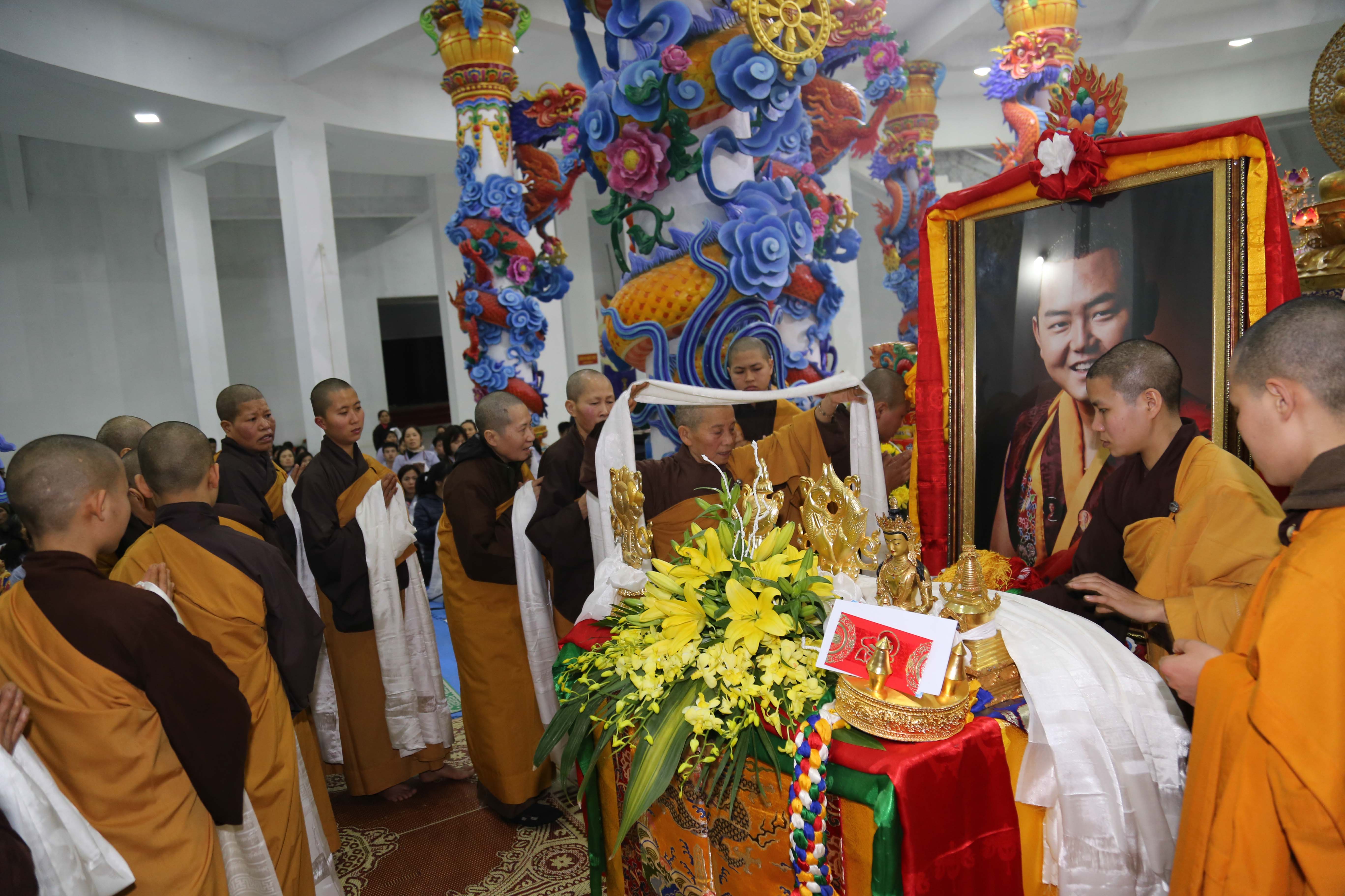 Xin gửi tới quý Phật tử những hình ảnh mới nhất của Khóa lễ nhân ngày vía Đức Quan Âm tại Đại Bảo Tháp Mandala Tây Thiên. Mở Đầu khóa lễ là phần dâng Lục cúng trang nghiêm của chư ni Tây Thiên lên mười phương chư Phật. Sau khi Thầy tỳ kheo ni Thích Thanh Tịnh thay vì đại chúng dâng lời tác bạch nhân ngày Khánh đản của Đức Nhiếp Chính Vương Gyalwa Dokhampa là phần cúng dường Mandala. Tiếp đến đại chúng cùng tụng kinh Phổ môn. Đặc biệt Quý Thầy đã cử hành khóa lễ Duchen nhân ngày vía cát tường vô cùng lợi lạc này.