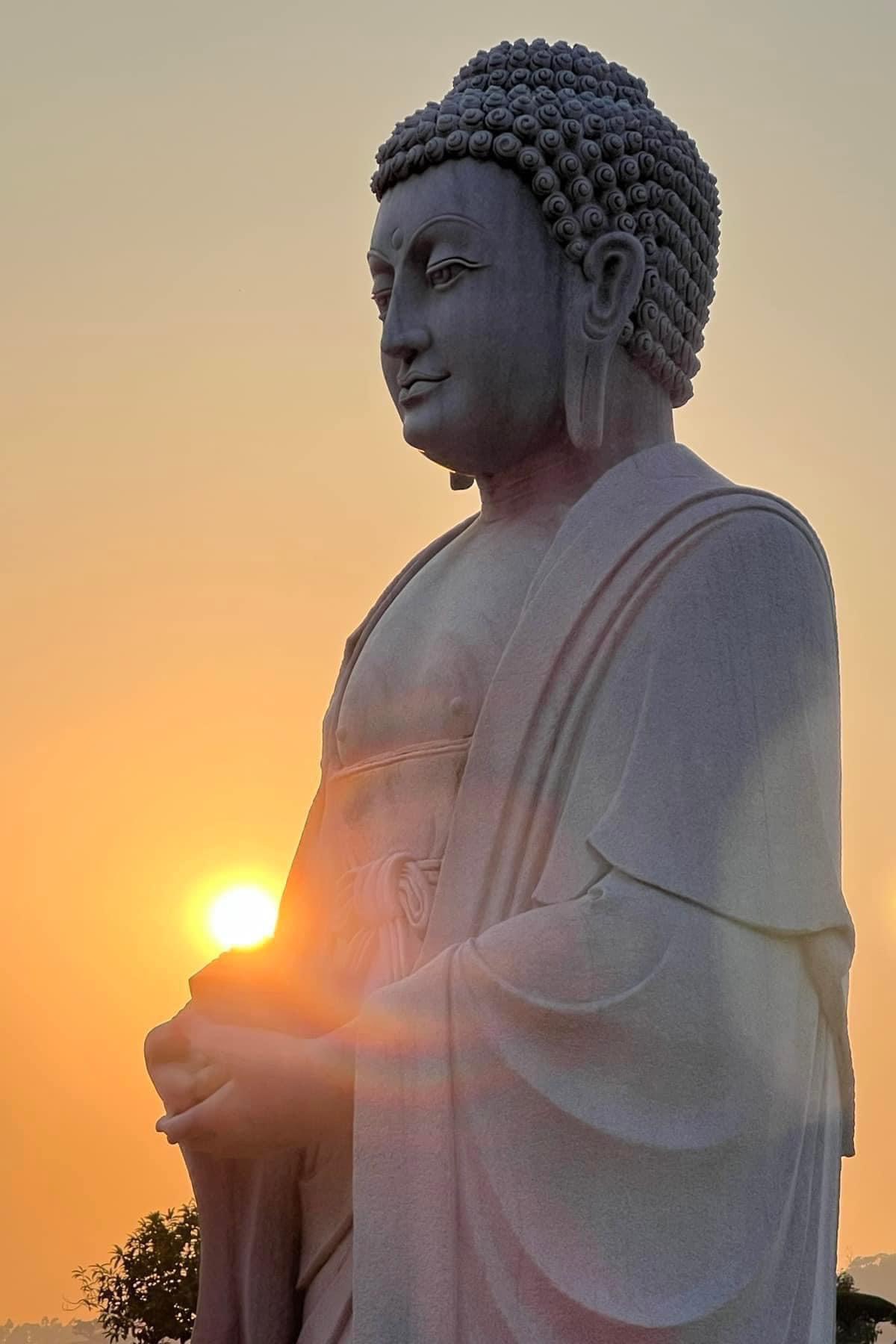 - Tôn tượng Đức Phật kết ấn Chuyển Pháp luân cao 7m, bằng đá trắng nguyên khối, thời gian tạc tượng mất 2 năm.