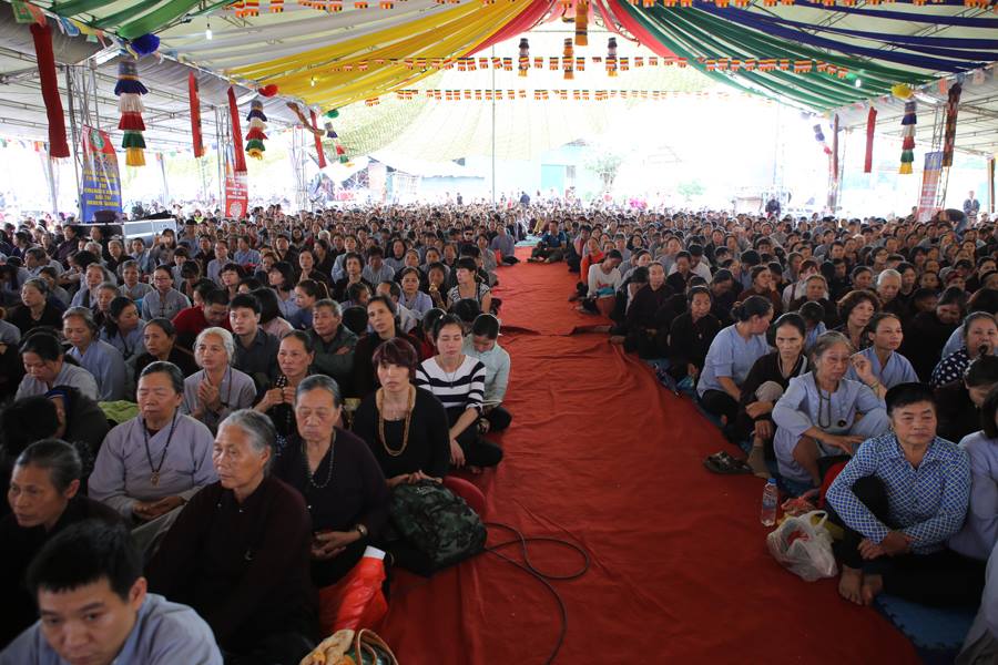 Lễ hội Quan Âm Đại Bảo Tháp Tây Thiên thu hút nhiều đoàn Phật tử từ Nghệ An, Hải Phòng, Hà Nội, … tới tham dự, thậm chí lưu lại nơi đây trong suốt thời gian diễn ra Lễ hội. Điều kiện sinh hoạt thiếu thốn, khó khăn không ngăn cản được tín tâm tha thiết của các Phật tử mong chờ đón nhận sự gia trì và giáo pháp từ bậc hóa thân chân thật của Đức Quan Âm. Một Phật tử đến từ Nghệ An lặng lẽ quay lại khóa lễ bằng điện thoại bởi bà muốn đem những hình ảnh của Pháp hội về cho người thân, bạn bè và những người chưa có đủ duyên được tham dự Pháp hội trực tiếp như mình.