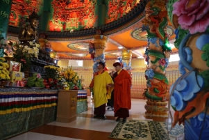 Ngày 19/03, trước sự thỉnh cầu của Quý Thầy Trụ trì Đại Bảo Tháp Mandala Tây Thiên, Đức Pháp Vương Gyalwang Drukpa đã từ bi truyền trao Quán đỉnh Tam bộ Trường Thọ: Đức Vô Lượng Thọ Phật, Đức Bạch Độ Mẫu và Đức Tôn Thắng Phật Mẫu cho đại chúng. Chư Tăng Truyền thừa Drukpa ban nước gia trì tới từng Phật tử, giúp họ tịnh hóa mọi ám chướng và tà niệm để có thể đón nhận trọn vẹn dòng suối cam lồ, gieo trồng hạt giống thành tựu giác ngộ trong tương lai. Đức Pháp Vương Gyalwang Drukpa sách tấn các Phật tử: sau khi thọ lãnh quán đỉnh hãy cố gắng phát nguyện mạnh mẽ thực hành phương pháp tu tập của Tam bộ Trường thọ vào đời sống để mang lại lợi ích cho hết thảy chúng sinh.