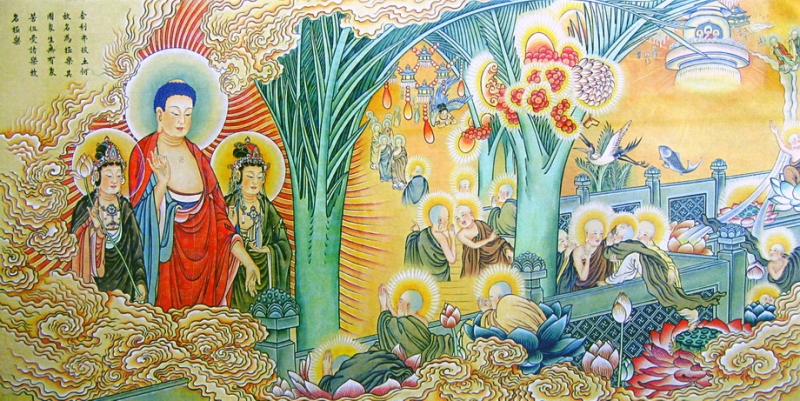 Tây Phương Cực Lạc thế giới cũng không có người làm công, làm ruộng, buôn bán. Nhân dân cõi Cực Lạc ngày ngày học tập, nghe pháp nhiệm màu, cúng dàng chư Phật mười phương, làm những việc mình hoan hỉ làm. Làm sao để đến được Cực Lạc thế giới? Chỉ cần Tín tâm kiên định, một lòng tin tưởng, một câu Phật hiệu niệm đến cùng, chuyên nhất tâm tu thì thành công.