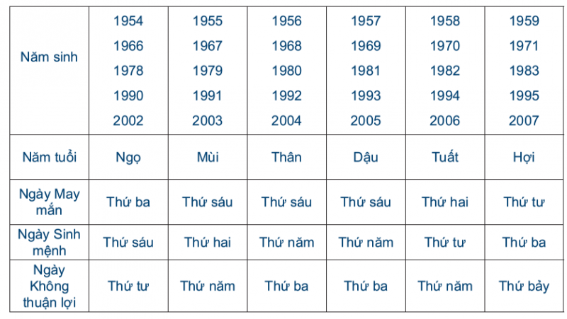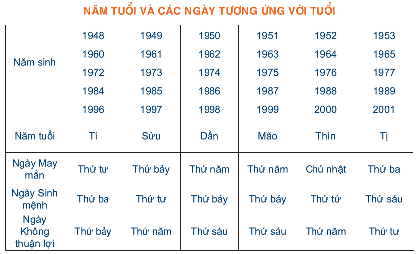 Năm tuổi và các ngày tương ứng với tuổi