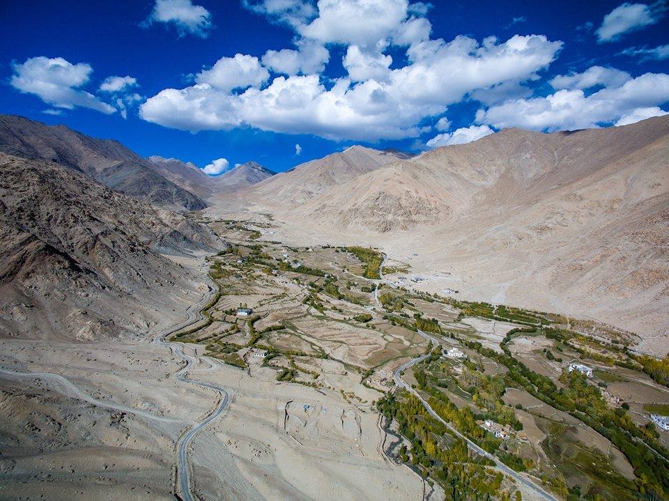 Chỉ một chặng bay ngắn từ Dehli, bạn đã có thể tới một trong những không cảng thương mại nằm ở vị trí cao nhất trên thế giới, sân bay Kushok Bakula Rimpochee ở Leh. Và nếu bạn xin được chỗ ngồi cạnh cửa sổ – thì đó sẽ là một chuyến thưởng ngoạn đầy kỳ thú. Những đám mây lãng đãng như cuộn bông bay theo gió, những đỉnh núi tuyết phủ trắng và những tự viện ẩn mình thấp thoáng trên triền núi cheo leo, tất cả dễ biến bạn thành một đứa trẻ tò mò hướng ánh mắt chăm chú qua khung cửa nhỏ hẹp háo hức với thế giới kỳ diệu đang trải ra dưới cánh máy bay.