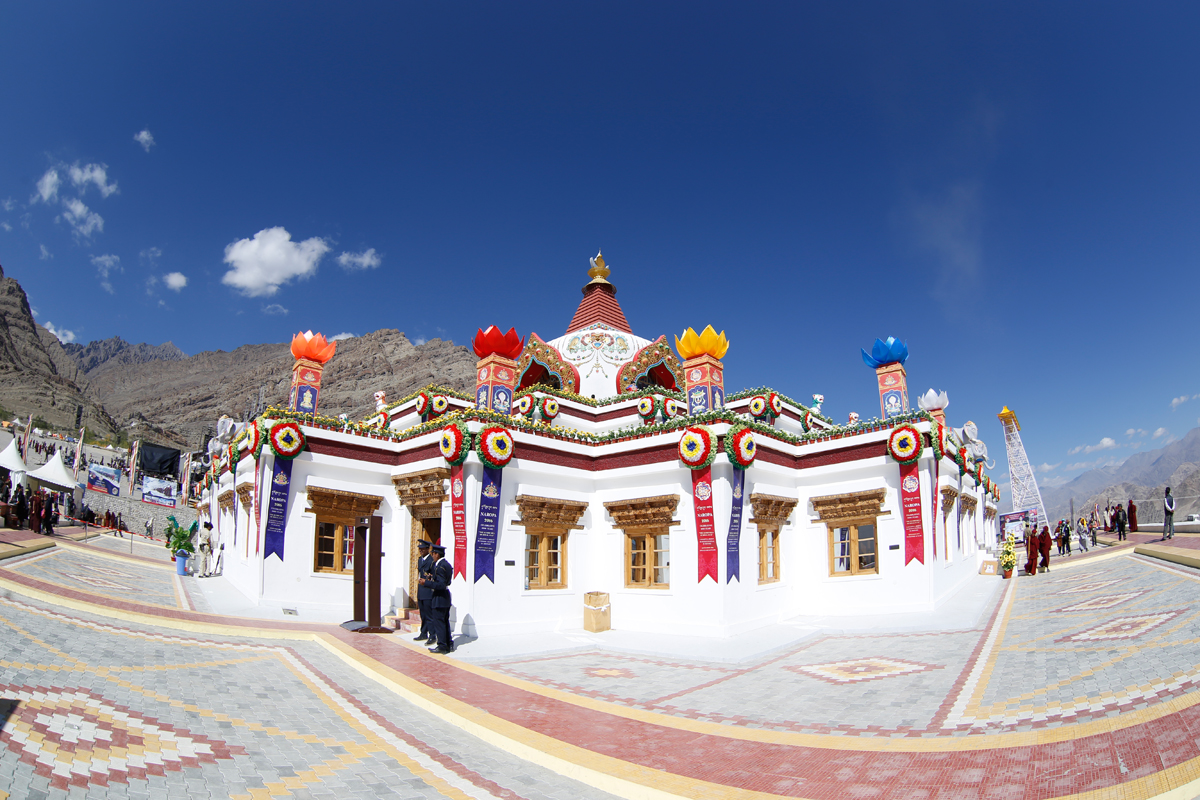 Kia, Đại Bảo Tháp Naropa, công trình kiến trúc tâm điểm của Đại lễ, đứng sừng sững uy nghi trên nền sẫm của dải núi hùng vĩ phía sau. Đại bảo tháp trắng tinh khiết, làm nổi bật những hoa văn vàng, xanh, cam rực rỡ sắc màu. Trước đó là khu đất rộng nơi vân tập chư Tăng, Ni, những hành giả và Phật tử tín tâm, thậm chí cả những du khách còn nhiều hoài nghi và tò mò, cùng bị thu hút đến đây để chiêm ngưỡng sự kỳ vĩ của Pháp hội.