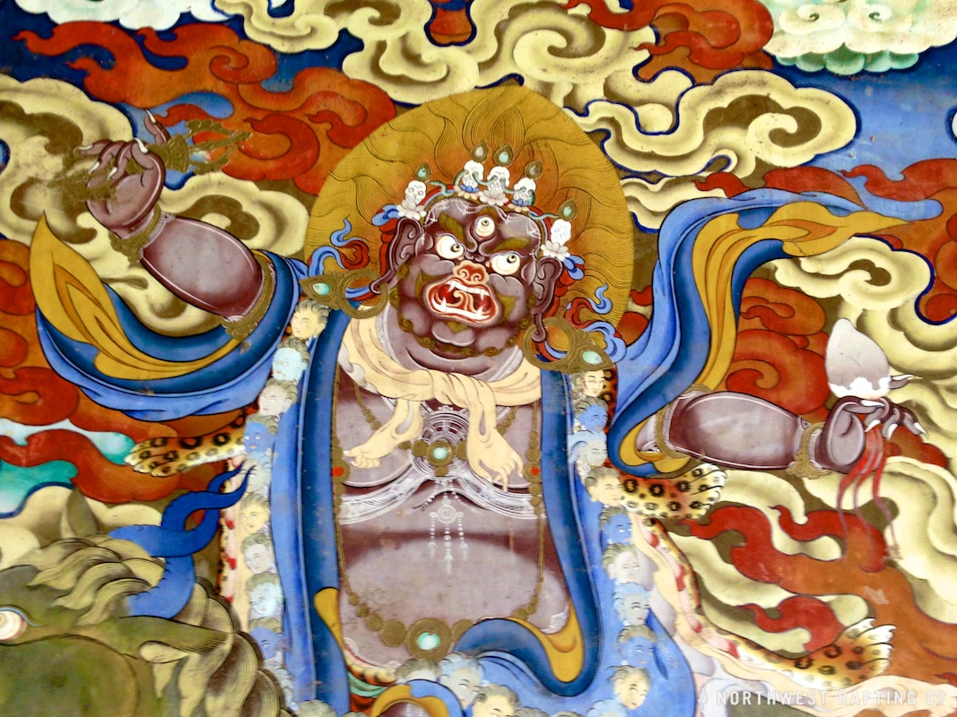 Bao quanh những Bản tôn này, đoàn tùy tùng vô lượng xuất hiện để hỗ trợ cho bậc tín tâm giữ giới và trừng trị những kẻ phá giới. Họ là tám Bản tôn của nghĩa địa. Bốn thứ lớp Bản tôn gồm ba Bản tôn của địa điểm linh thiêng, mười Bản tôn địa điểm linh thiêng, hai mươi tư Bản tôn địa điểm linh thiêng, các Bản tôn chiến binh cùng với tất cả những bậc Hộ pháp, tùy tùng hộ vệ của họ. Tất cả đều đeo sức trang hoàng bằng xương người mang theo trống, kèn xương người, trống sọ, những lá cờ chiến thắng làm bằng da người, trầm hương làm bằng thịt và vô lượng những loại âm nhạc khác nhau. Họ tràn đầy khắp vũ trụ trong tư thế đang khiêu vũ những vũ điệu khác nhau. Tất cả những âm thanh, âm nhạc của họ như đang xé toạc đầu của anh ra.