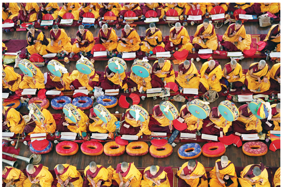 (Chư ni tự viện Druk Amitabha Moutain trong một khoá lễ tại tự viện)