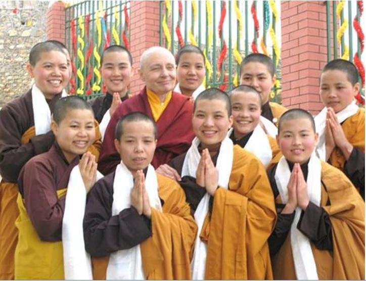 (Ni sư Tôn quý Jetsunma Tenzin Palmo cùng chư Ni Tây Thiên)