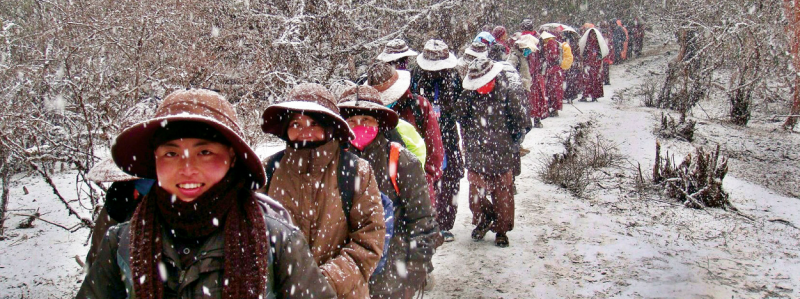 (Chư Ni trong một chuyến bộ hành triều bái các thánh địa trên vùng núi Himalaya)