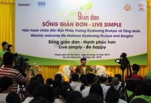 Sáng 5/10 tại TP HCM, Đức Pháp Vương Gyalwang Drukpa dự tọa đàm "Sức mạnh Tình yêu thương" và ra mắt tủ sách "Sống hạnh phúc" bao gồm các đầu sách: Giác ngộ mỗi ngày, Hạnh phúc tại tâm, Nghệ thuật sống an lạc, Sức mạnh tình yêu thương...