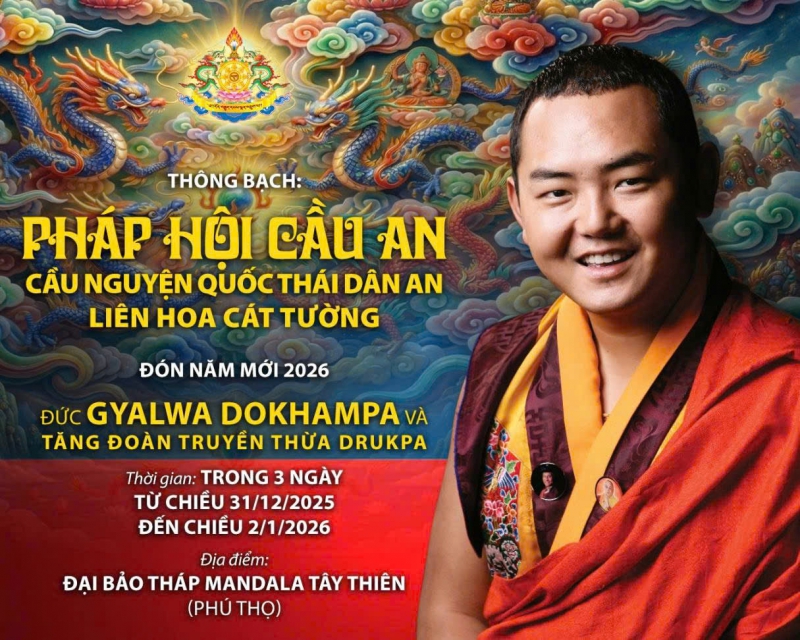 Được tổ chức vào ngày đầu năm mới (từ 31/12/2025 đến 2/1/2026) tại Đại Bảo Tháp Mandala Tây Thiên, với sự hiện diện gia trì của Đức Nhiếp Chính Vương Gyalwa Dokhampa - bậc Kim Cương Thượng Sư - và Tăng đoàn Truyền thừa Drukpa, Pháp hội này là phúc duyên quý báu để đại chúng tham dự khai mở thiện duyên, kết nối với năng lượng từ bi – trí tuệ từ chư Phật Bồ tát, chư Kim Cương Hộ Pháp, cùng chào đón một Năm mới 2026 an lạc, cát tường, hạnh phúc thành tựu!