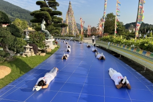 Trong khuôn khổ Đại Pháp hội Cầu An Dược Sư - Hoàng Tài Bảo Thiên Đầu Năm Giáp Thìn 2024 do Đức H.E Drukpa Thuksey Rinpoche và Tăng đoàn Truyền thừa Drukpa cử hành tại Đại Bảo Tháp Mandala Tây Thiên, CLB Tuổi trẻ Thăng Long YDA Việt Nam tổ chức chương trình Tam bộ nhất bái vi nhiễu Đại Bảo Tháp.