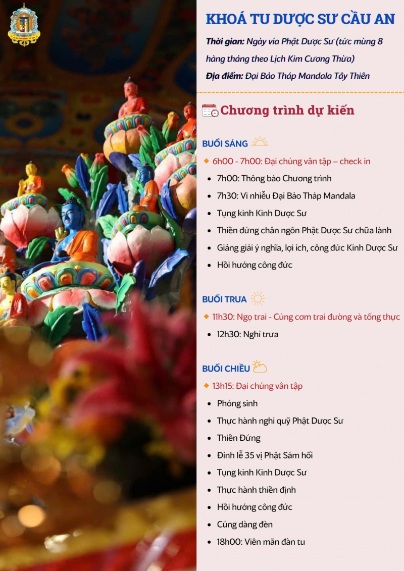Thời gian: Thứ Tư, ngày 11/09/2024 - tức ngày vía Phật Dược Sư, mùng 8 theo Lịch Kim Cương Thừa