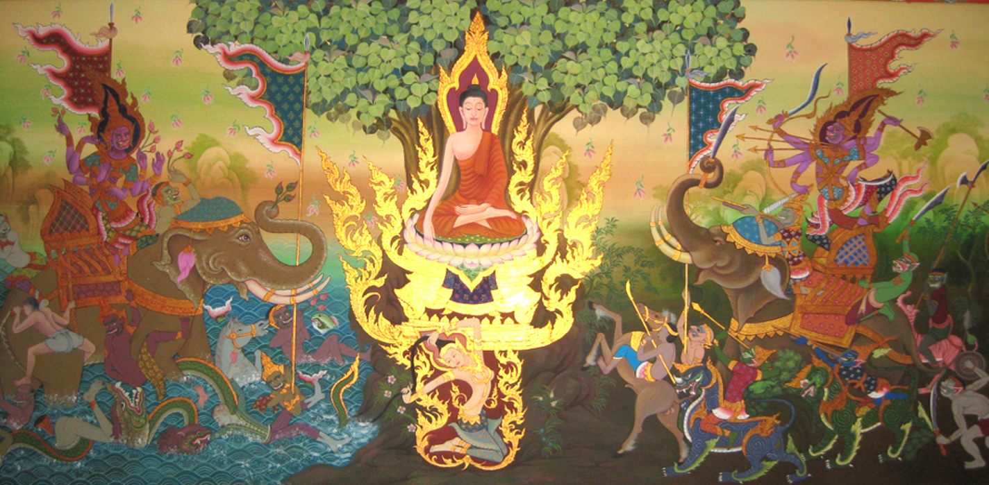Đêm. Dòng sông Nerañjarā lấp lánh ánh trăng. Gió thổi rì rào xuyên qua rừng cây trầm mặc. Hương hoa cỏ dịu dàng, thoang thoảng giữa không gian. Bồ tát Tất Đạt Đa sau khi chiến thắng nội ngoại ma, Ngài ngồi yên tĩnh theo dõi hơi thở với tâm và trí hoàn toàn tỉnh thức và thanh khiết...