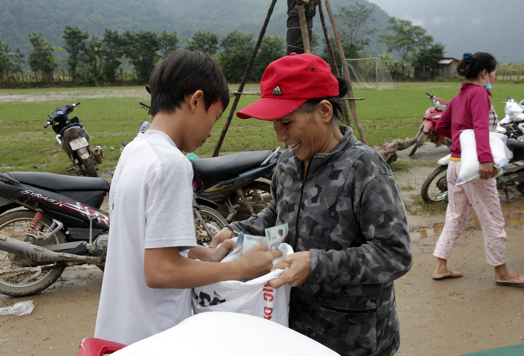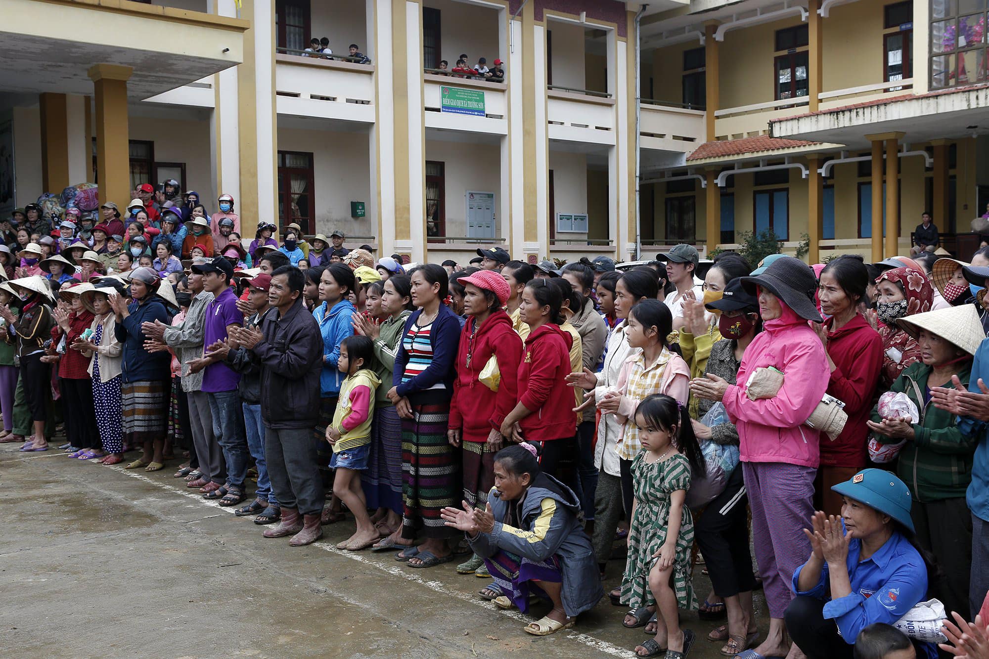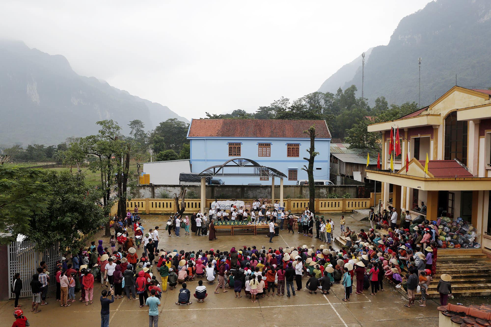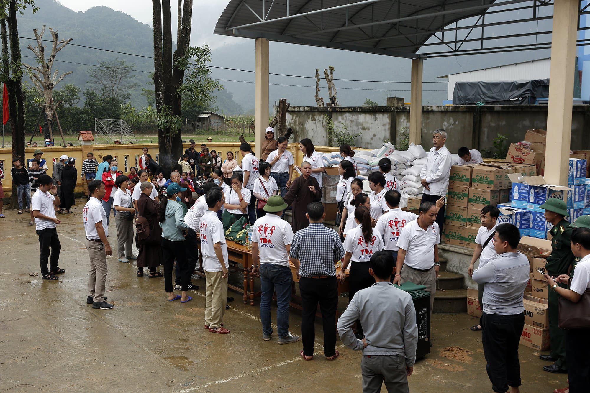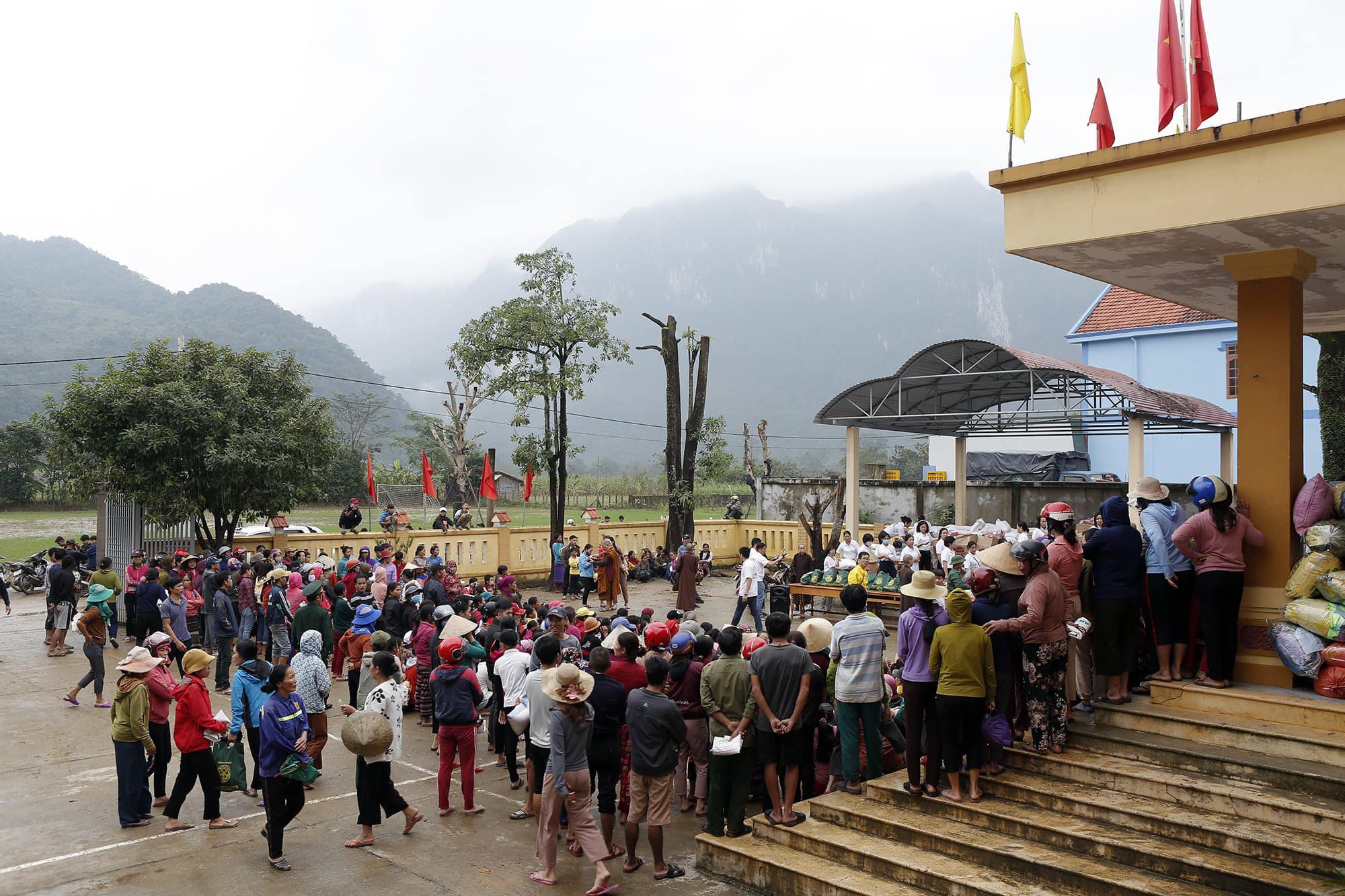 Tại xã Trường Sơn, Quảng Ninh, Quảng Bình, đoàn đã phát 575 suất quà bao gồm: 500 nghìn đồng, 10kg gạo, nước, thuốc, đèn pin... Đây là huyện thiệt hại rất nặng của Quảng Bình do lũ quét và lở đất.