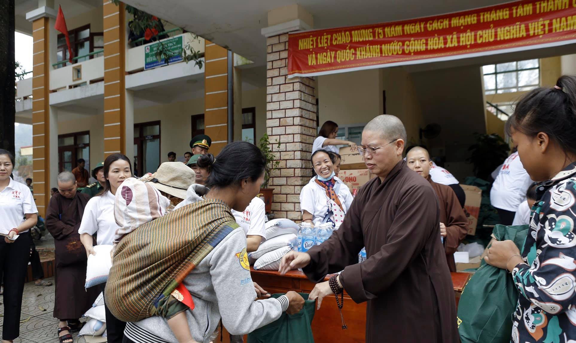 Ngày 4-5/11, đoàn thiện nguyện của Quý Thầy, chư Tăng Ni và các Phật tử đã tới phát quà, hỗ trợ đồng bào tại tỉnh Quảng Bình.