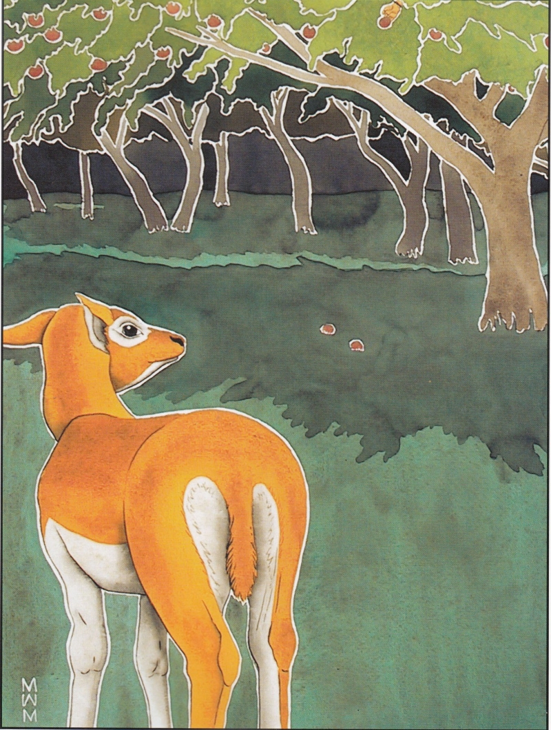 Tiến đến trước mặt nhà vua, người đàn ông xảo trá và lừa đảo dang cánh tay chỉ vào Hươu Vàng và tuyên bố: “Đây chính là Hươu Vàng mà hoàng hậu mong ước có được trong cung điện”. Chú quạ giận dữ và phẫn nộ bởi sự phản bội vô đạo đức và có tính toán của gã đàn ông. Từ chỗ đậu của mình trên ngọn cây, quạ quan sát và buông lời nguyền rủa gã xấu xa, khiến bàn tay hắn ngay lập tức đứt lìa khỏi cánh tay và rơi xuống đất.
