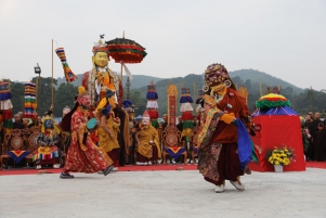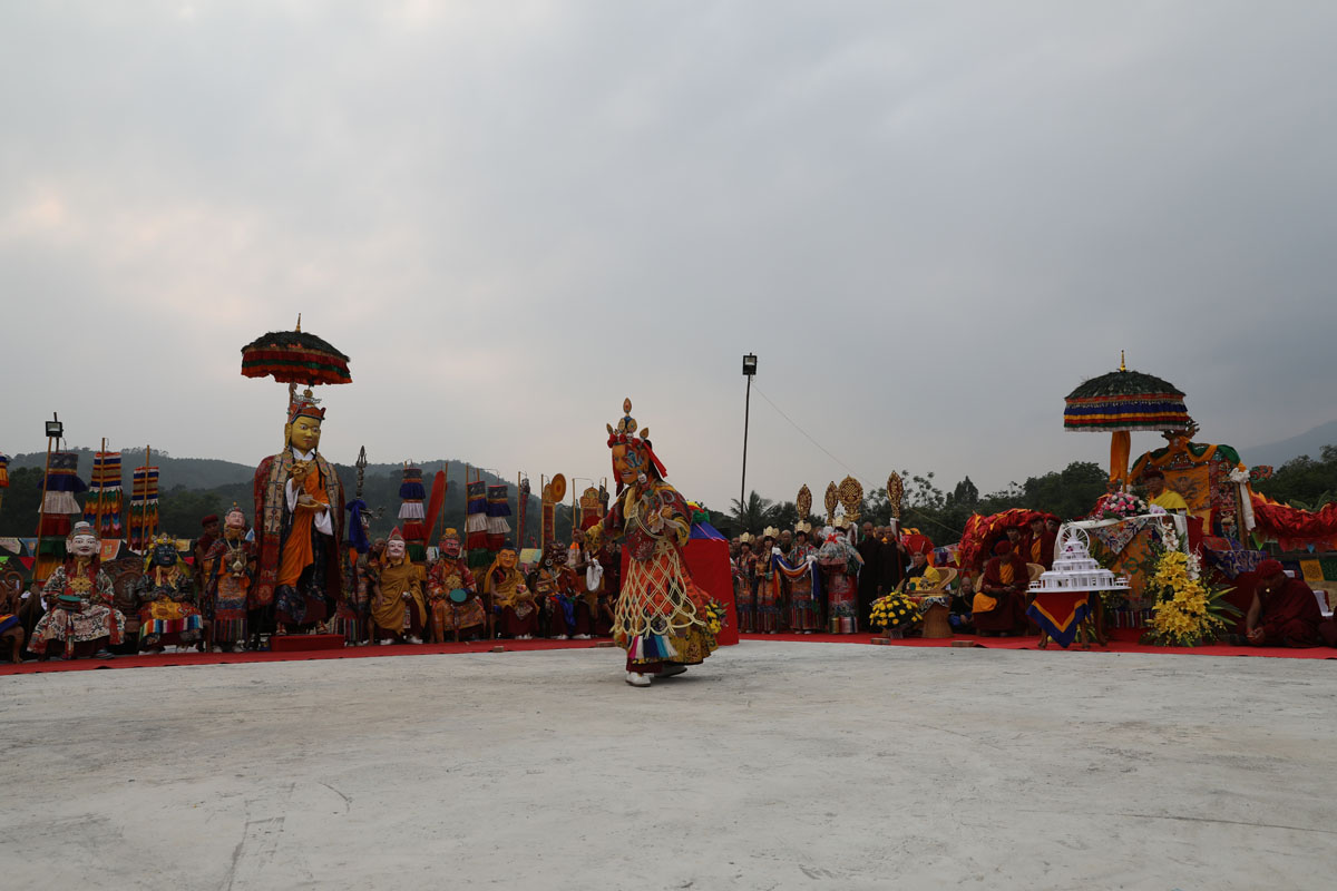 Các Hóa thân đứng thành vòng tròn hoặc hai hàng và cùng phô diễn vũ điệu, sau đó cùng an tọa và ban gia trì cho các thành viên tham dự buổi lễ. Các bản tôn daka, không hành mẫu dakini, thiên nhân mang các sức trang hoàng bằng xương xuất hiện và tán thán Đức Liên Hoa Sinh. Rồi lần lượt từng Hóa thân cử hành vũ điệu theo lời tụng và nhạc khí cúng dàng. Bậc thượng sư giác ngộ chủ đàn cùng các bậc Thầy đang an tọa sẽ tung hoa và gạo ngũ sắc để thể hiện sự tôn kính và chào đón Đức Liên Hoa Sinh. Kết thúc vũ điệu, các Hóa thân lần lượt rời khu vực sân khấu.