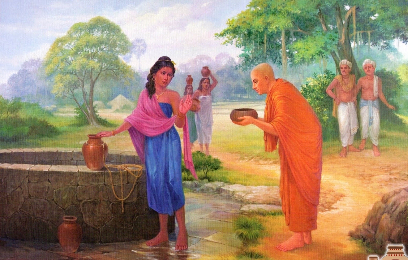 - Thưa cô! Người Sa-môn đốì với mọi người đều bình đẳng, không phân biệt sang hèn, giai cấp, cô đừng ngại, xin hoan hỷ cho tôi bát nước!